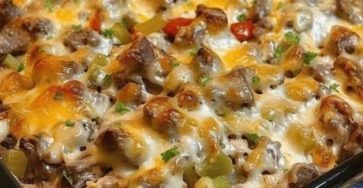 Description This Philly Cheesesteak Bake turns the classic sandwich into a rich, cheesy, oven-baked comfort dish. Juicy beef, sautéed peppers…